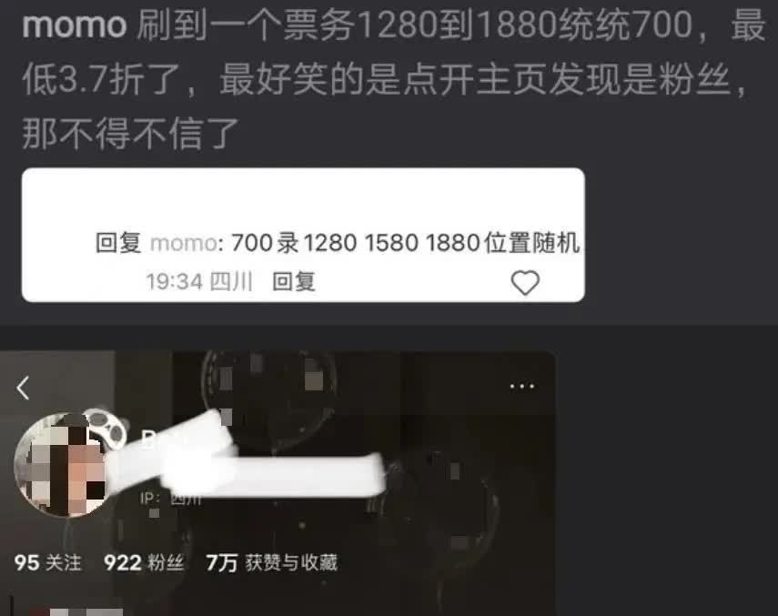 有票务甚至打出广告:不管1880、1580还是1280价位的票,统统只要700块。这意味着,最高档位的门票折扣已低于3.7折。那些早早拼手速、花原价抢到票的观众,尤其是买了高价票的,一觉醒来发现自己可能凭空亏掉一千多块。论坛里,准备观看她其他城市场次的粉丝开始焦虑地讨论,要不要先退掉原价票,等着开演前打折再捡漏。